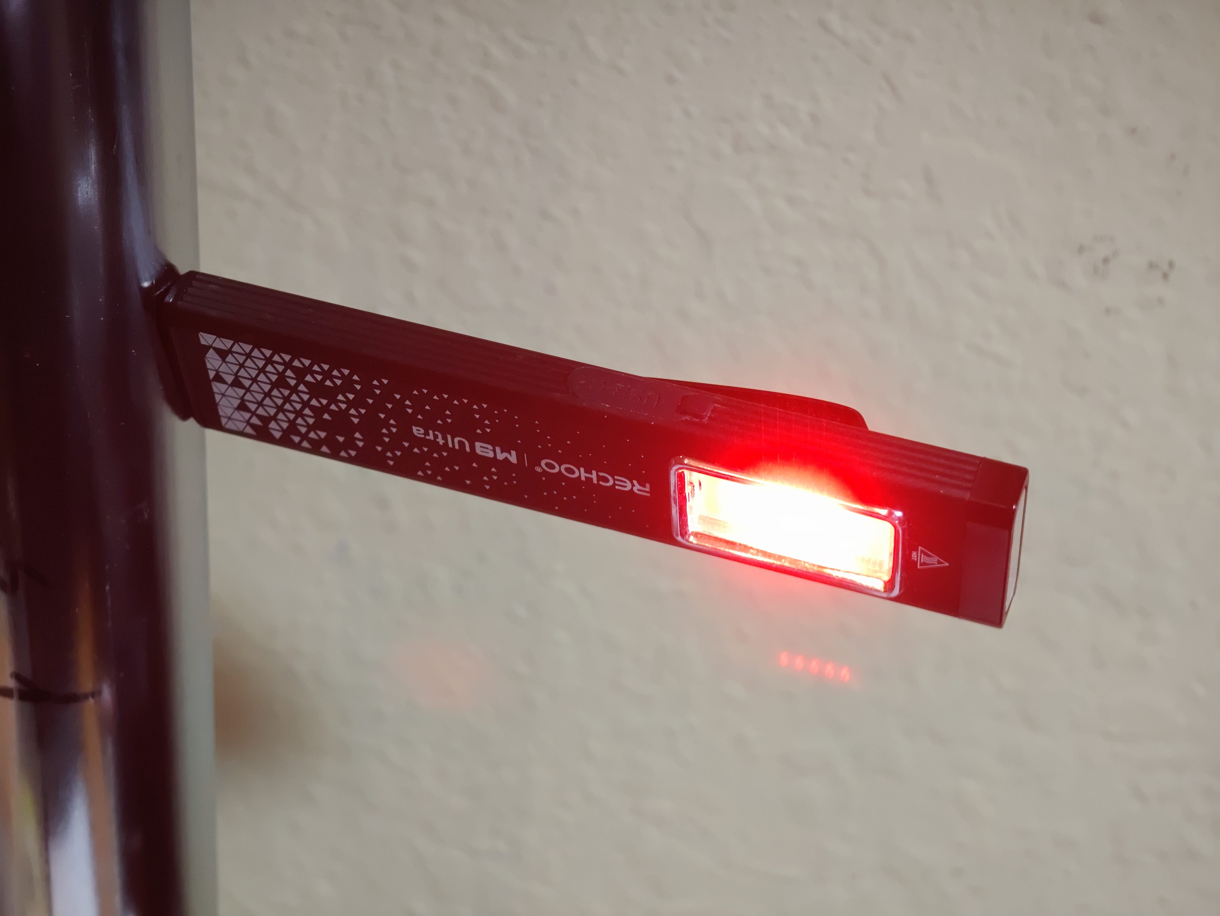 And best of all for photographers, it has a red LED for night mode, which protects your night vision. Here’s a RECHOO Flat in night mode attached by the magnet to the center stanchion on my copy stand: